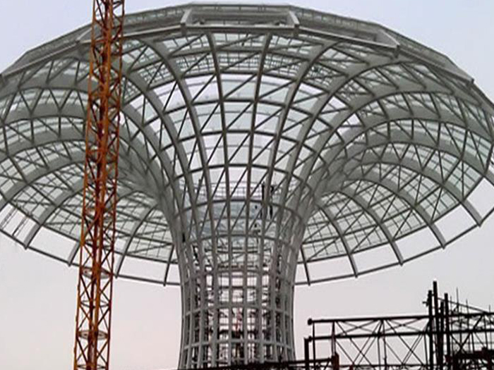 二、球形网架结构因其结构新颖,受力合理,自重轻、用钢量低等优点。如大型体育场馆球形岑溪螺栓球网架、公共场馆球形网架、电厂岑溪螺栓球网架、水泥工业球形网架、仓储物流球形网架、岑溪干煤棚工业球形网架、岑溪收费站岑溪加油站球形网架、展览中心、影剧院、商场、航站楼、候车厅、工厂岑溪车间、仓库、电视塔等球形螺栓球节点网架。国内球形网架结构主要分为:岑溪焊接球节点网架及螺栓球节点网架两种。螺栓球节点网架其构件工厂内加工量较大,现场安装便捷,适用于现场工期紧,岑溪施工条件、用电量受制约,网架形状复杂、岑溪杆件定位困难的异形结构。螺栓球节点球形网架系统基本由岑溪杆件、螺栓球、支撑支座等组成。按照节点形式可分为交叉岑溪桁架体系、四角锥体系、三角锥体系等。支撑方式多为固定支座支撑。对于大面积、大跨度及有特殊受力或伸缩要求的网架结构可采用橡胶支座、滑移支座、球铰支座等支撑形式,以满足结构自身的受力稳定、均衡,便于内力释放等设计要求。